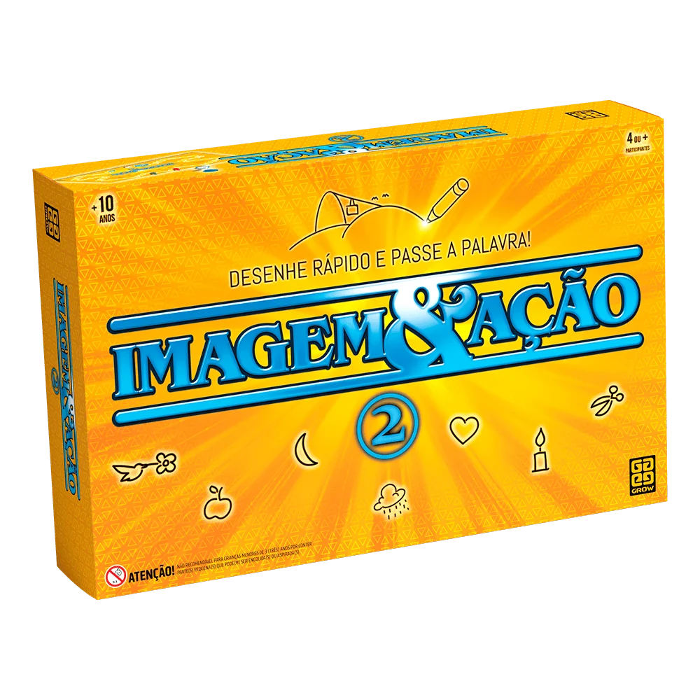 Jogo Imagem Ação I GrowO clássico jogo de tabuleiro de desenho e adivinhação, são 2.400 palavras ou expressões, e você não precisa ser desenhista, o que vale é a sua criatividade! Dividas em 6 categorias para você e seus amigos divertirem e passar ótimos momentos juntos. Cada jogador será o desenhista e, na sua vez, tentará passar à sua equipe uma palavra ou expressão. É proibido falar, escrever letras e números e fazer gestos ou mímicas. Os únicos instrumentos que você terá à disposição são um lápis e um papel para desenhar, esboçar e rabiscar o que quiser. Os colegas de equipe têm o tempo da ampulheta para adivinhar!